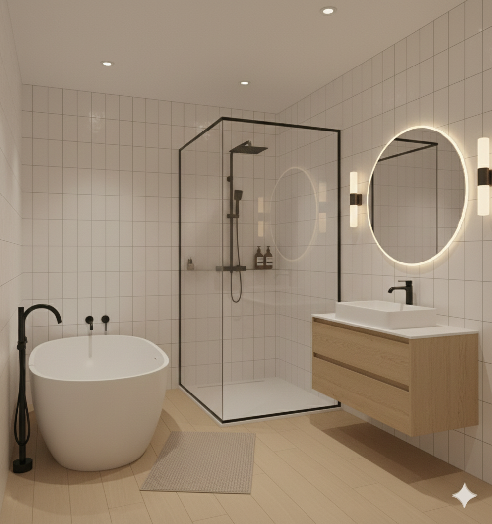 Indulge in a bathroom that feels like a getaway. Premium fixtures and calming aesthetics.